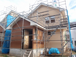 モルタルの下地の前に雨の進入を防ぐ防水紙を張ります。この上にラス下と呼ばれる板を張っていきます。