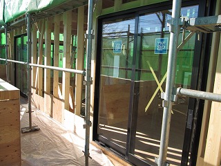 サッシ取付中です。